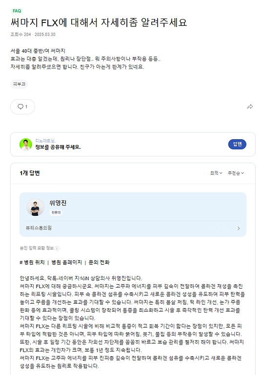 키워드 몇 개만 검색해보고 다른 의사들이 어떻게 답변을 다는지만 보셔도 많은 참고가 될 것이라 생각합니다.