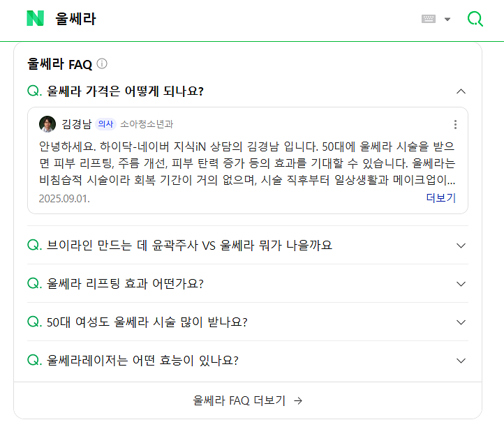 2~3년 전에는 네이버 검색창에 FAQ 화면이 없었는데, 더 양질의 정보 제공을 위해 지식인 답변들을 노출하기 시작했는데요.