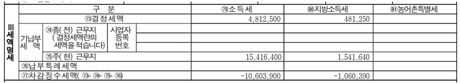 연말정산을 하려고 전에 다니던 A병원 원천징수영수증을 받아서 보니, 차감징수세액에 (-)금액이 있네요?