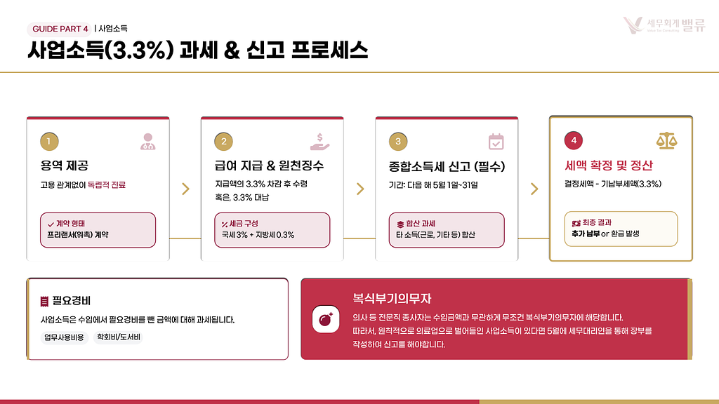 ✔ 이 소득은 2월 연말정산 대상이 아닙니다. ✔ 다음 해 5월 1일~31일에 종합소득세 신고를 별도로 직접 하셔야 합니다.