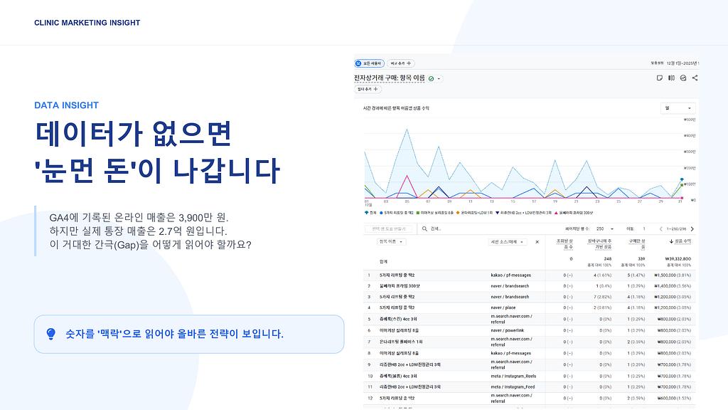 지난 1편에서는 마케팅의 '진단'과 3대 핵심 지표(CAC, CVR, LTV)에 대해 알아봤습니다. 오늘은 약속드린 대로, 실제 A 병원의 성적표를 열어보며 "데이터가 어떻게 눈먼 돈을 막아주는지" 생생한 사례를 들려드리려 합니다.