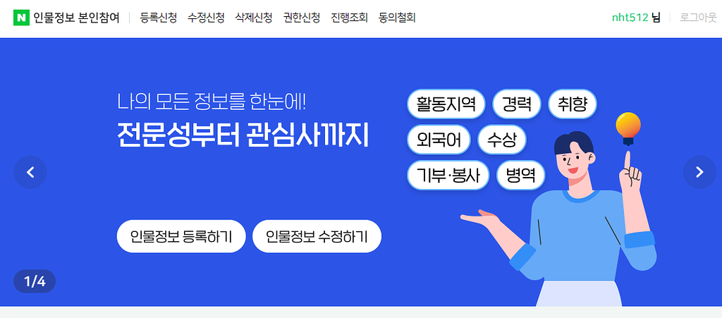 1. 네이버에서 '인물정보등록' 이라고 검색 한 후 ‘